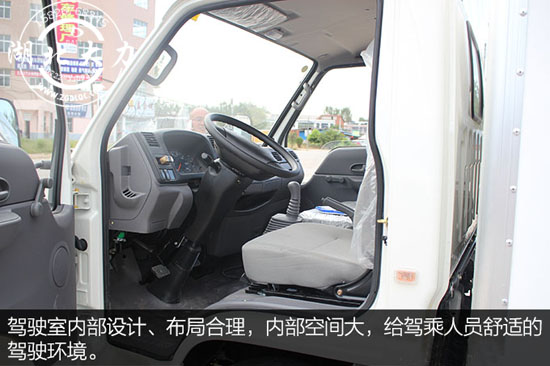江鈴順達(dá)冷藏車的駕駛室采用流線型設(shè)計,外觀方方正正,各邊棱角分明。車窗面積擴(kuò)大,為駕駛員提供了良好的駕駛視野。霧燈、大燈、轉(zhuǎn)向燈一字排開安裝,梯形設(shè)計更美觀。江鈴順達(dá)的經(jīng)典LOGO標(biāo)志“JMC”位于整個駕駛室的正中間,標(biāo)志明顯易見。