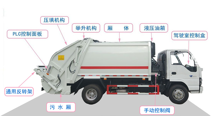3,新款結(jié)構(gòu)填充器加大方便操作,手電一體操作模式,雙邊控制盒,帶駕駛室操作,帶應(yīng)急手動控制,標(biāo)配垃圾翻轉(zhuǎn)斗或掛桶翻轉(zhuǎn)板,8方及以上車型帶雙污水箱。