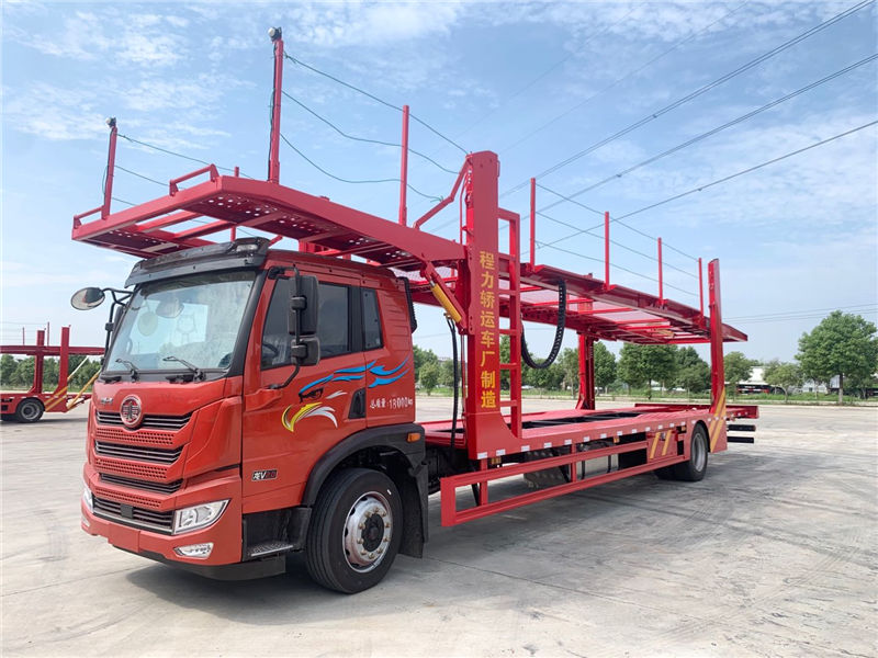 采用一汽解放的二類運輸車底盤,龍V2.0平頂半浮駕駛室,軸距7200,陜齒8檔變速箱,后橋435升級沖悍橋(速比4.444);錫柴六缸220馬力發(fā)動機(jī),295/60R22.5輪胎,空調(diào),空氣彈簧座椅,電動門窗,電動舉升,300L鋁合金油箱,中控鎖,ABS,行車記錄儀(GPS+北斗),自主氣驅(qū)系統(tǒng)。上裝配置:全車高配10支油缸,上板標(biāo)配凈長12米,下板凈長9.6米,下板板面離地高1米,上下板凈空間≥2米,國產(chǎn)液壓控制系統(tǒng),立柱為全低合金高強(qiáng)材料制作,其他材料為:Q235、Q345和HG70高強(qiáng)度國標(biāo)鋼材。