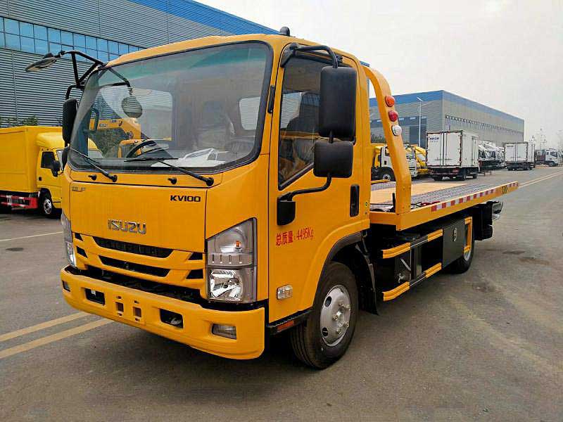 一拖二高速救援清障車_慶鈴五十鈴KV100_5.2米高速救援清障車,全自動(dòng)夾緊裝置,因?yàn)槿嚩獭⒏叨鹊,特別適應(yīng)地下車庫的車身救援。后托臂可牽引重量達(dá)2噸。高速救援清障車智能化,就是從安全、輕松、人性化考慮,在系統(tǒng)中裝配一些智能設(shè)備,如遙控系統(tǒng),機(jī)構(gòu)安全報(bào)警系統(tǒng),緊急拯救系統(tǒng)?焖儆行У氖鹿嗜囘M(jìn)行救援。地庫皮卡拖車的最大優(yōu)點(diǎn)是,可以在狹小地區(qū)和地下車庫實(shí)施汽車救援。專業(yè)的拖車底盤,承載車強(qiáng)。