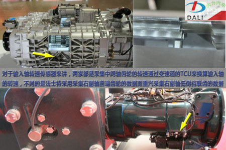 在去年一年卡車(chē)之家的跟蹤過(guò)程中,我們發(fā)現(xiàn)對(duì)于重汽變速箱來(lái)講,位于后部的這個(gè)傳感器經(jīng)常會(huì)因?yàn)樵谥刎?fù)荷下引起中間軸彎曲的情況下容易出現(xiàn)輕微丟失信號(hào)的問(wèn)題,作為比較,我們羅列兩種變速箱在這一塊的部分我個(gè)人的理解參數(shù):