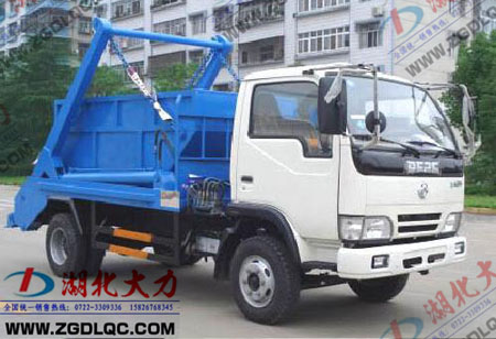 擺臂垃圾車:擺臂垃圾車的特點是垃圾箱與車體分開,實現(xiàn)一車與多個垃圾箱的聯(lián)合使用,循環(huán)運(yùn)輸。貨斗有方形和船形,方形用于地坑式,船形置于地面,充分提高了車輛的運(yùn)輸能力,特別適用于短途運(yùn)輸,如環(huán)衛(wèi)部門對城鎮(zhèn)垃圾的清理、運(yùn)輸?shù)。為了不使裝載的輕飄貨物在運(yùn)輸中飄落,此車型可設(shè)計成全封閉結(jié)構(gòu)。垃圾斗可吊上吊下,擺臂一次工作循環(huán)時間:60S。