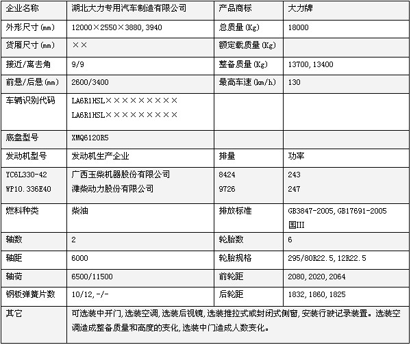 金龍牌XMQ6129型臥鋪客車技術(shù)參數(shù)