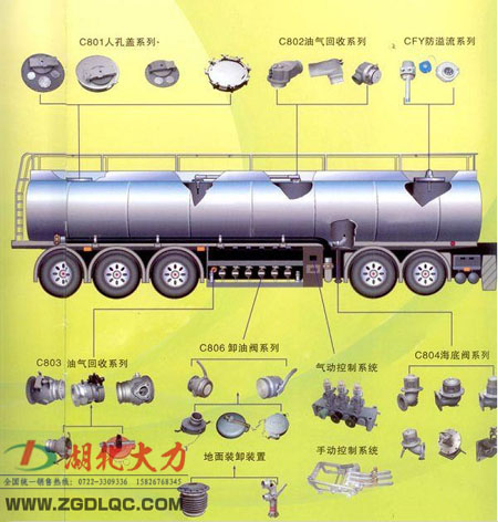 這個(gè)圖片可以很方便的看出來,油罐車可以分倉的,每一個(gè)倉都需要一鋁合金罐口(也稱為人孔),可以帶防溢漏探頭,海底閥,卸油接頭,海底閥,又稱緊急切斷閥,安裝于罐體底部,進(jìn)行下裝加油時(shí)使用,操作簡便、節(jié)時(shí)、安全環(huán)保。